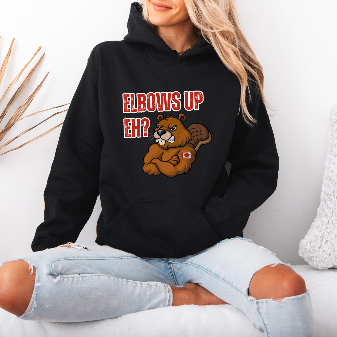 This Canadian-inspired clothing line features the Elbows Up Canada hoodie. Every order is custom-made, so please allow 2-3 weeks for materials to come in, if not in stock. We appreciate your support and remind you to keep your Elbows Up Eh!