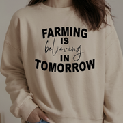 Farming is ones way of life. We farm because it's a lifestyle, not because of the paycheque at the end of the year. With farming comes lots of risks, and to succeed you have to believe in tomorrow. These crewnecks are unisex sizing and hand printed with a permeant ink lasting a lifetime.