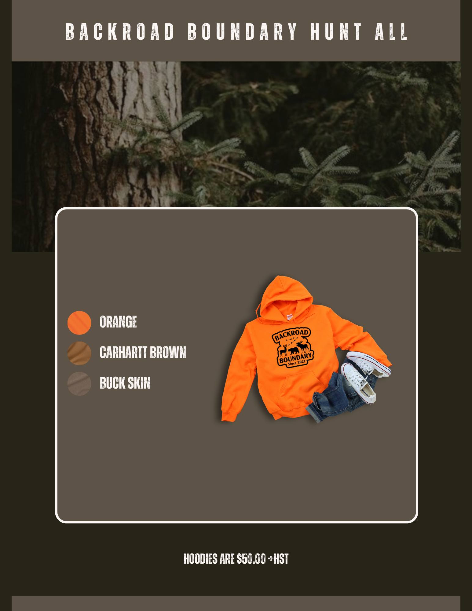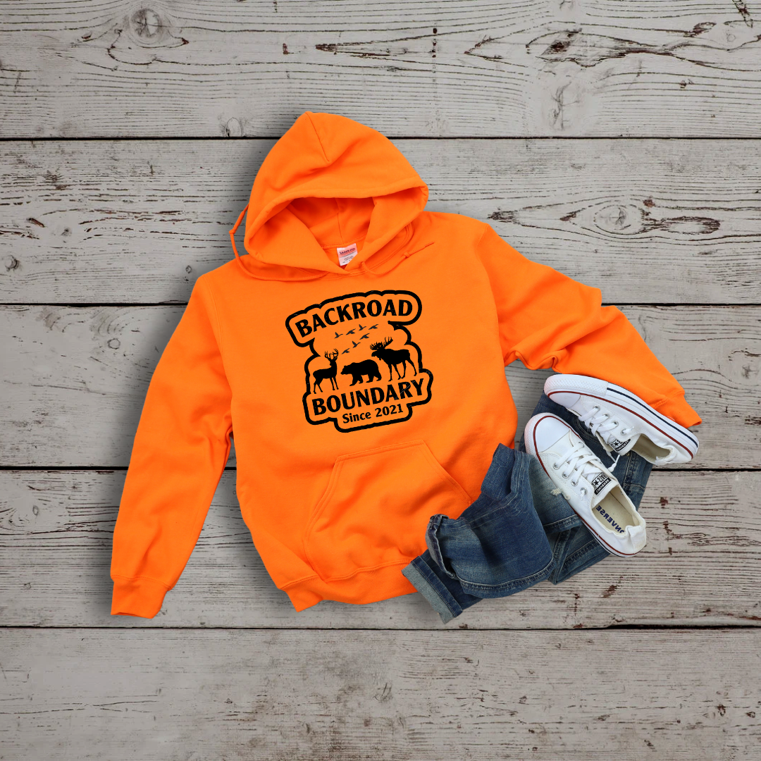 Experience the ultimate hunting adventure with our NEW Backroad Hunters Hoodie. Perfect for deer, bear, goose, and moose hunters. This hoodie is made for long lasting comfort and durability. This hoodie is hand silk screened with a permanent ink lasting a lifetime.